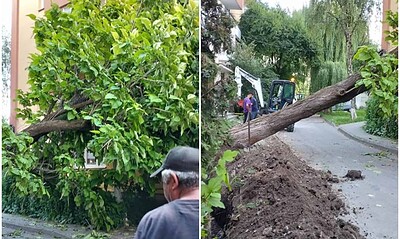 Un copac a căzut joi pe o stradă din Alba Iulia, după ce muncitorii care...