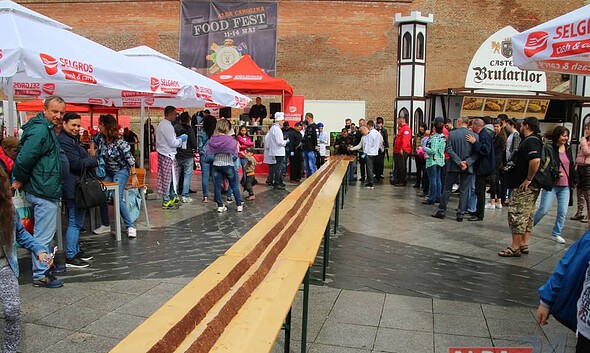 Cel mai mare salam de biscuiți din România, în lungime de 25,6 de metri, a fost pregătit de albaiulianul chef Cosmin Toma, duminică, la Alba Iulia, în cadrul festivalului „Alba Carolina...