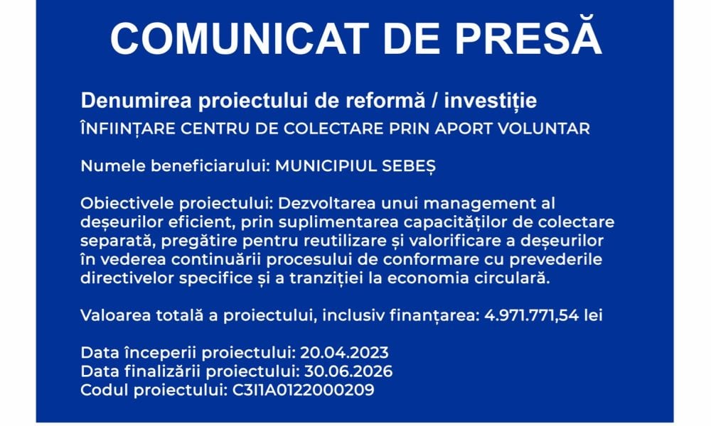 Alba Iulia va avea un Centru de Colectare prin Aport Voluntar. Primarul municipiului Alba Iulia, Gabriel Pleșa, a anunțat demararea proiectului de înființare a Centrului de...