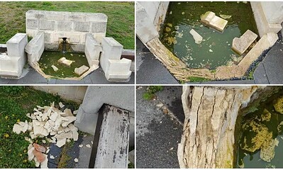 Lucrările de refacere a marginii din piatră a uneia dintre fântânile aflate pe Latura de Est a Cetății Alba Carolina, distrusă ca urmare a eroziunii...