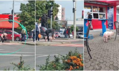 Un purceluș care a căzut vineri dintr-un autovehicul, în zona unei intersecții aglomerate din Alba...