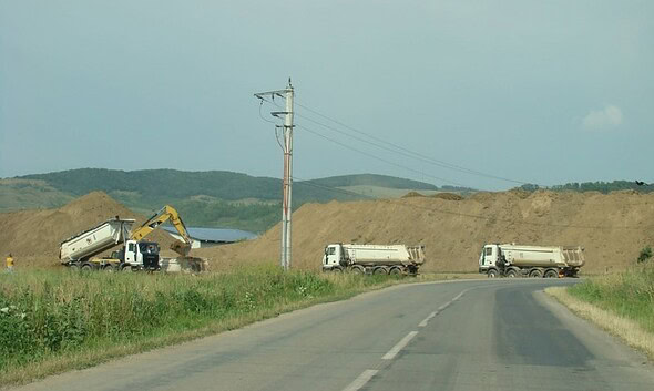 Drumul tehnic, care urmează în paralel primele două loturi ale autostrăzii Sebeș - Turda, e...