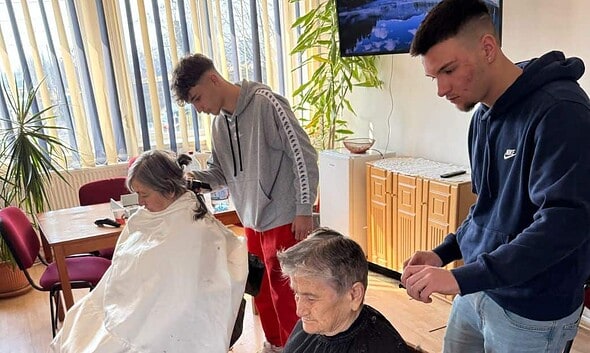 FOTO: Surpriză pentru seniorii de la Căminul pentru vârstnici din Alba Iulia. Au primit servicii gratuite de frizerie și coafură