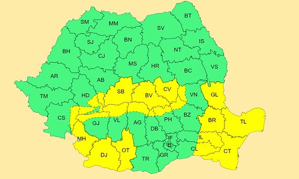 COD GALBEN în județul Alba și alte zone ale României. Brumă, ploi și intensificări ale vântului
