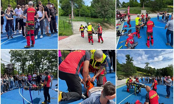 FOTO: Salvamontiștii din Alba au prezentat elevilor din Aiud echipamentele specifice salvării din zona montană