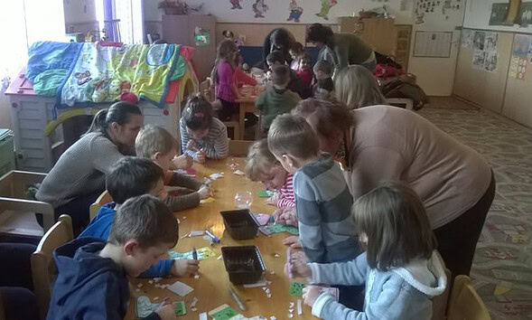 Copiii de la Centrul de zi pentru copii antepreşcolari „Sfânta Irina” din Blaj împreună cu fraţii şi surorile lor mai mari sau mai mici au...