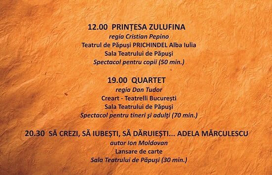 Organizatorii Festivalului Internaţional de Teatru “Poveşti” de la Alba Iulia anunţă că din 15 septembrie s-au pus în vânzare biletele pentru acest eveniment, la sediul Teatrului de Păpuși „Prichindel” Alba...
