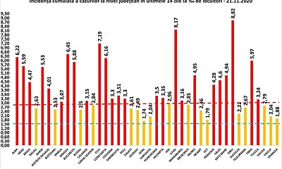 Grupul de Comunicare Strategică a transmis sâmbătă, 21 noiembrie, situația incidenței cazurilor COVID pe județe,...