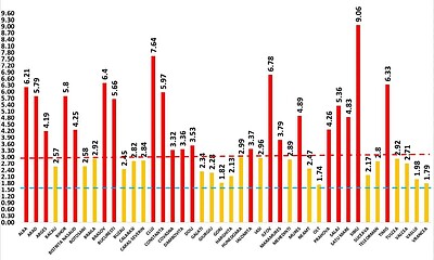 De la 1 octombrie 2020, numărul cazurilor a crescut treptat, stabilizându-se la aproximativ 10.000 de cazuri noi descoperite zilnic, la un număr mediu de teste...