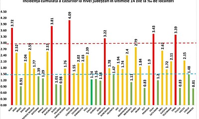 Grupul de Comunicare Strategică a transmis joi, 29 octombrie, situația incidenței cazurilor COVID pe județe, actualizată. Județele cu incidență de peste 3 la mia de...