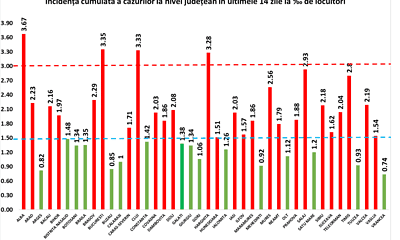 GRAFIC GCS: TOP incidența pe județe a cazurilor COVID. Alba trece pe locul 2, după Cluj. Date oficiale din 27 octombrie