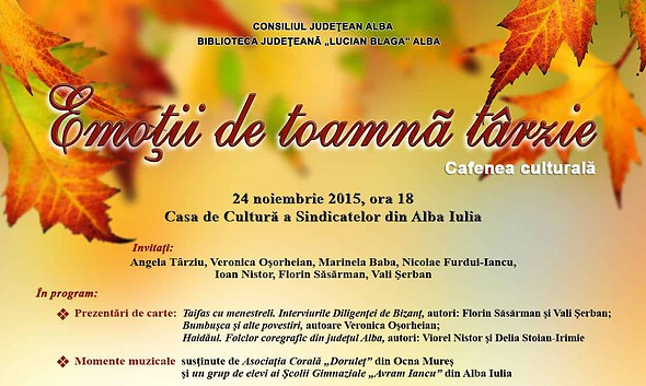 În perioada 23 - 24 noiembrie, Consiliul Județean Alba și Biblioteca Județeană „Lucian Blaga” Alba organizează Zilele Bibliotecii, un eveniment amplu și complex menit să satisfacă gusturile tuturor iubitorilor de cultură,...