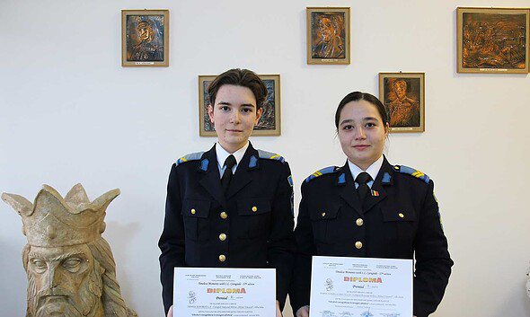 FOTO: Două eleve de la Colegiul Militar din Alba Iulia, premiul I și II la concursul „Timeless Moments with I.L. Caragiale”