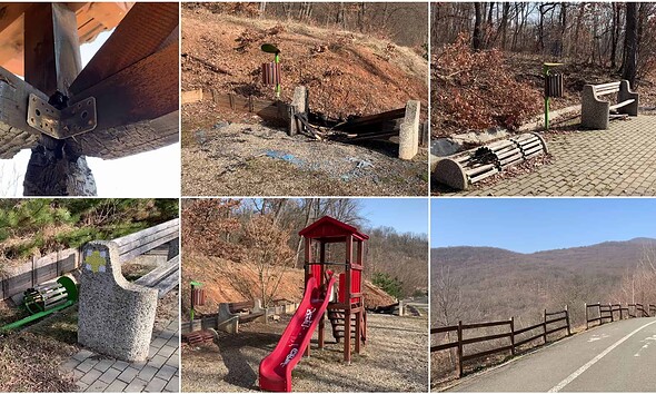 Elemente din lemn incendiate, bănci rupte, coșuri de gunoi distruse sau suporturi de biciclete călcate în picioare. Așa arată o parte din mobilierul urban aflat de-a lungul pistei de biciclete...