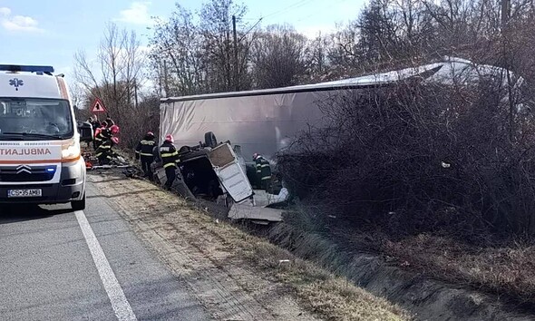 Trei morți, dintre care doi copii, într-un accident cumplit produs pe DN 6. Impact între un camion și un microbuz de marfă