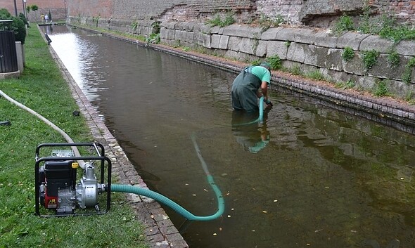 FOTO: "Muncă de chinez" pentru curăţarea şi igienizarea bazinelor cu peşti exotici din Şanţurile Cetăţii. Demonstraţie "live"