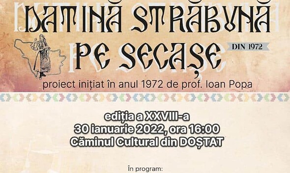 Comunitățile din Țara Secașelor își prezintă duminică, 30 ianuarie 2022, o parte din zestrea etnofolclorică în cadrul Festivalului interjudețean „Datină străbună pe Secaşe”. Este unul dintre cele mai vechi festivaluri...
