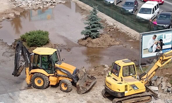 Incident în Alba Iulia. Un autobuz a fost lovit de un utilaj care lucra la loturile de mobilitate