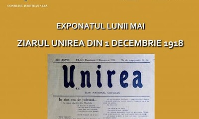 Muzeul Național al Unirii din Alba Iulia va prezenta marți, începând cu ora 11.00, exponatul lunii mai. Este vorba de un exemplar din Ziarul Unirea,...