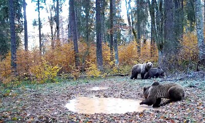 Trei exemplare frumoase de Ursus Arctos, respectiv o ursoaică cu pui și un urs adult...