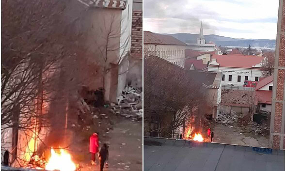 FOTO ȘTIREA TA Foc aprins seară de seară de oamenii străzii, în centrul municipiului Alba Iulia. Au ocupat o fostă sală de sport