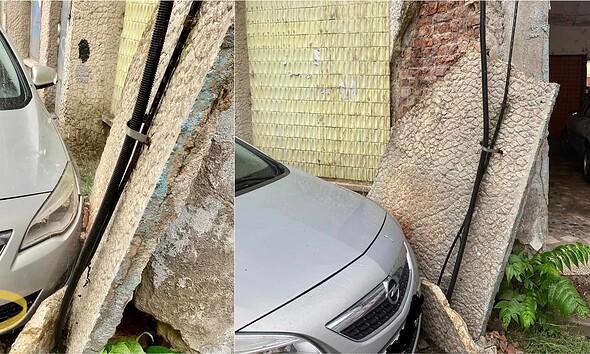 O bucată destul de mare din fațada clădirii fostului Cinematograf Columna s-a rupt și a căzut lângă o mașină parcată lângă clădire. Pe bucata căzută sunt prinse și două cabluri,...