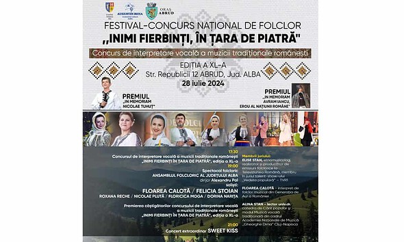Festivalul Național de Folclor ”Inimi fierbinți în Țara de piatră” de la Abrud se desfășoară în acest an, în 28 iulie. La a XL-a ediție...