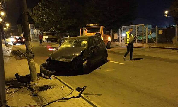 FOTO: ACCIDENT la Alba Iulia. Un şofer cu alcool “la bord” a intrat cu maşina într-o casă şi a ricoşat într-un stâlp de curent
