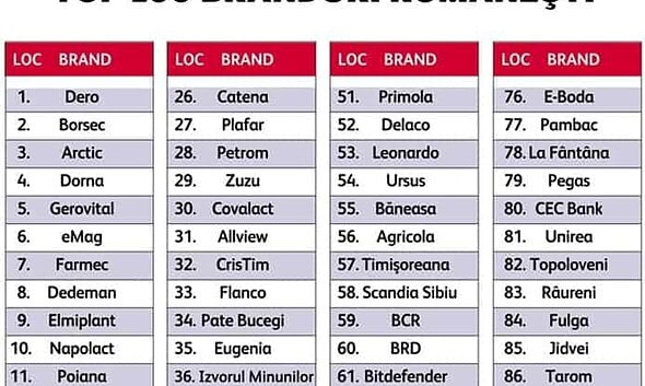 CINCI mărci din ALBA în TOP 100 cele mai puternice branduri româneşti. Preferinţele de încredere ale consumatorilor în 2015