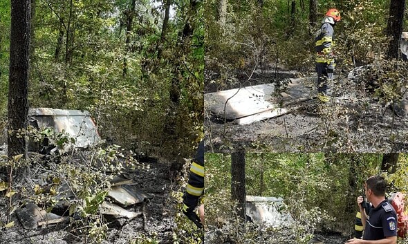 UPDATE FOTO-VIDEO: Avion de mici dimensiuni, prăbușit într-o pădure din județul Giurgiu. Două persoane găsite carbonizate