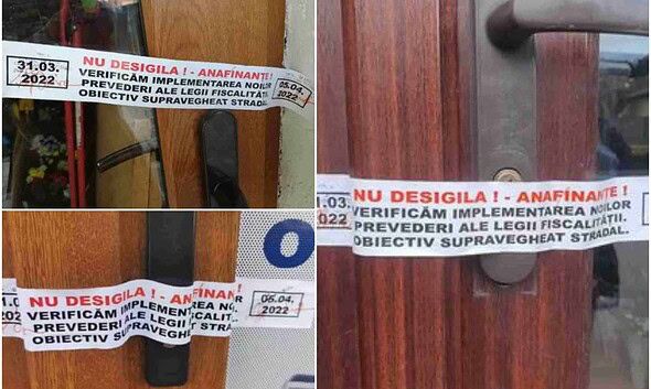 Glumă de 1 aprilie, la Aiud. Un cetățean a lipit pe ușile unor firme mai multe afișe pe care scria: ”Nu desigila! ANAFINANȚE! Verificăm implementarea noilor prevederi ale legii fiscalității....