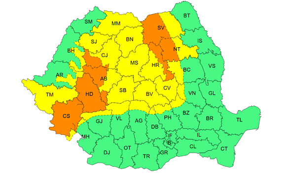 Cod Portocaliu de furtuni manifestate prin averse importante cantitativ, rafale puternice de vânt și grindină, emis de meteorologi pentru duminică, 17 august, între orele 14.00 - 21.00. Fenomene meteo așteptate:...
