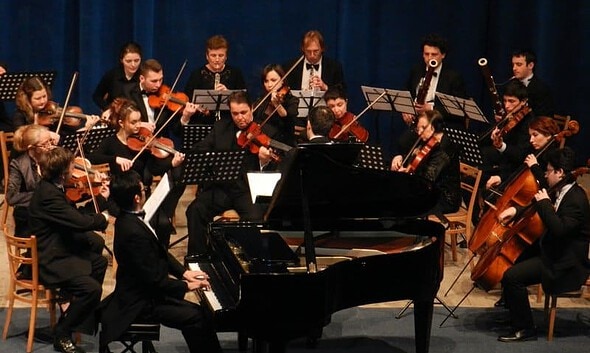 FOTO-VIDEO| Seară de poveste la Alba Iulia: Orchestra de Cameră a județului, pianistul T. Imai și dirijorul F. Crisanaz au ridicat sala în picioare