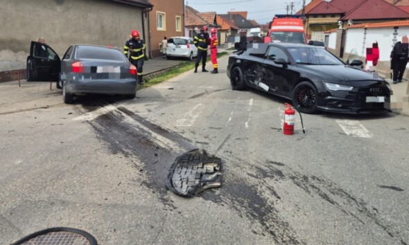 FOTO ACCIDENT RUTIER la Sebeș: Impact între două autoturisme pe strada Tudor Vladimirescu