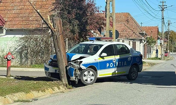 Cum s-a petrecut accidentul rutier din Cricău, în care o mașină de poliție a fost avariată. Urmărire, terminată într-un stâlp