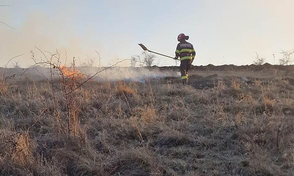 Incendiu de vegetație uscată, la Cut. Intervin pompierii din Sebeș și SVSU Sebeș