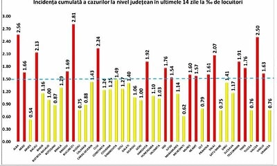 DSP Alba a transmis lista actualizată a incidenței cazurilor noi la mia de locuitori, înregistrată...