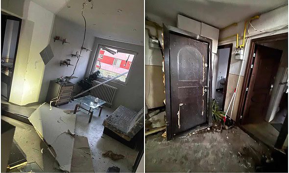 FOTO: Primele imagini din interior, după explozia produsă într-un bloc din Alba Iulia. Geamuri sparte, uși rupte, mobilier distrus