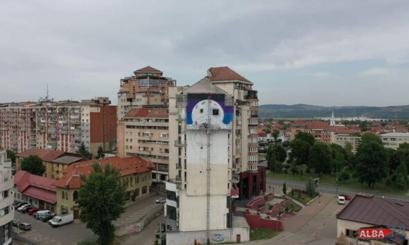 La peste 30 de metri înălțime, în centrul municipiului Alba Iulia, artistul stradal Irlo lucrează la un desen mural, înalt cât tot blocul turn care îi deservește ca spațiu neconvențional...