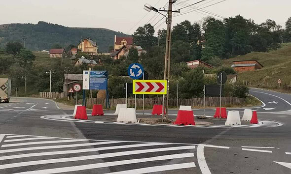 FOTO-VIDEO: Sensuri giratorii temporare, montate la ieșirile din Abrud spre Alba Iulia și Brad
