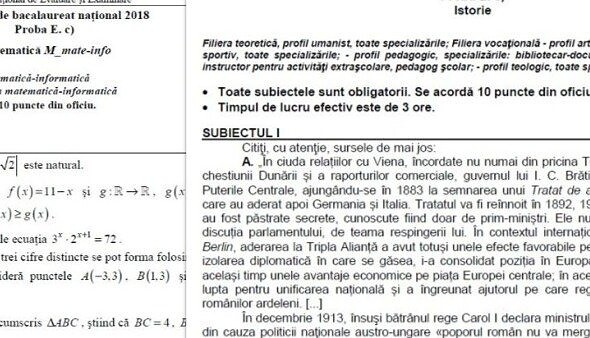 Proba scrisă obligatorie a profilului - Matematică sau Istorie, la simularea de Bacalaureat 2018 se...