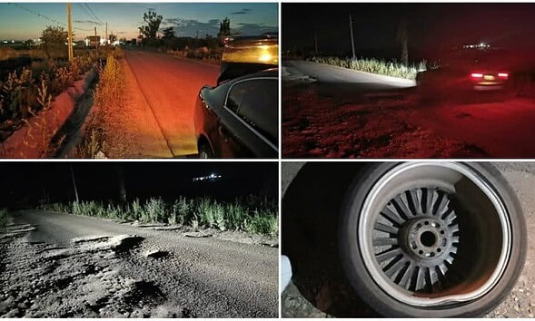 FOTO ȘTIREA TA: Un șofer și-a făcut praf o jantă la mașină, pe un drum județean asfaltat vara trecută