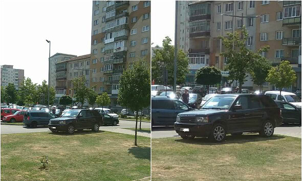 FOTO ȘTIREA TA pe Alba24: Parcare „cu tupeu” lângă spitalul din Alba Iulia. Cu jeep-ul „cocoțat” pe spaţiul verde