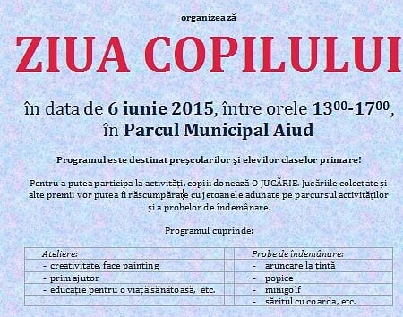 Sâmbătă, la Aiud, copiii au un nou prilej de bucurie şi distracţie. În luna în care se sărbătoreşte Ziua Internațională a Copilului, cei mici vor fi în centrul atenţiei, la...