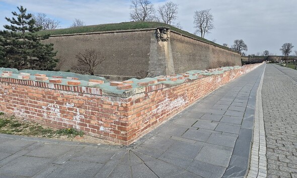 Folii de nailon ”asigurate” cu cărămizi pe stânga și dreapta: așa arată în 2026 protejarea unor lucrări de întreținere asupra unui obiectiv istoric. Scena se desfășoară în Cetatea Alba Carolina...