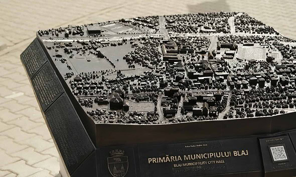 FOTO: Blajul din bronz. Cum arată macheta tactilă a municipiului, amplasată în Piața 1848