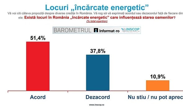 Mai mult de jumătate dintre români sunt de acord cu afirmația că în România există locuri „încărcate energetic” care influențează starea oamenilor, arată un sondaj realizat de INSCOP, cu denumirea...