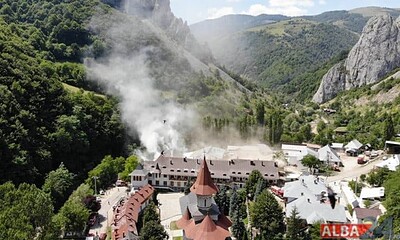 Incendiu la Mănăstirea Râmeț! Potrivit reprezentanților Inspectoratului pentru Situații de Urgență (ISU) Alba, arde acoperișul...