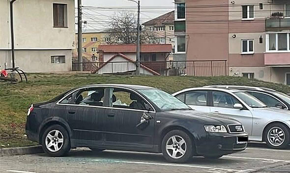 FOTO ȘTIREA TA: Mașină distrusă într-o parcare din Alba Iulia. Polițiștii au deschis un dosar penal. Ce s-ar fi întâmplat