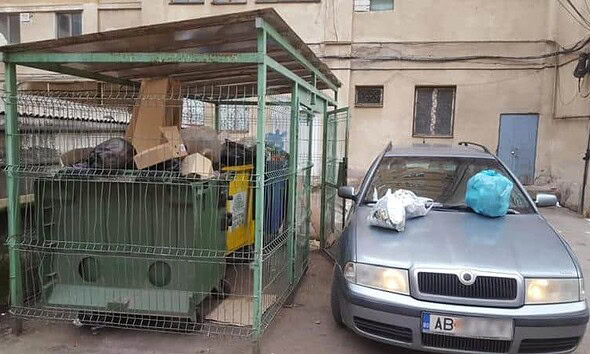 O mașină parcată prea aproape de locul în care sunt amplasate pubelele de gunoi de lângă blocul M6 de pe Bulevardul 1 Decembrie 1918 din Alba Iulia a fost ”împodobită”,...